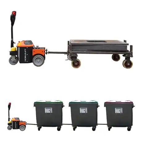 Collectivités & Gestion des déchets : Déplacement sans effort de bennes et bacs roulants. Parmi les modèles, le Tracteur électrique lithium TE20LI Noblelift 2000 Kg est prisé dans ce domaine.